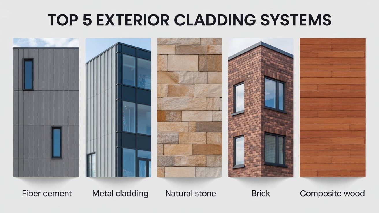 Stone, terracotta, and fiber cement offer natural or textured appearances while maintaining durability. Stone materials such as granite and sandstone give a solid finish that lasts for decades. Terracotta provides weather resistance and a traditional look. Fiber cement is light, adaptable, and available in multiple colors.
