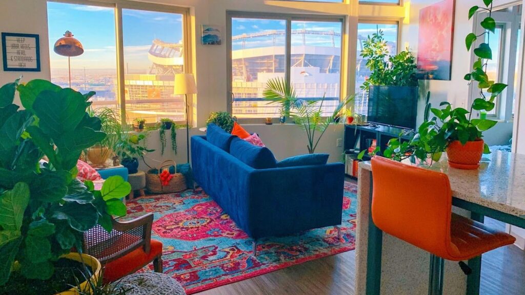 The quickest way to transform any rental space is by layering in texture and playing with light. You can’t rip up the carpets or redo the floors, but you can stack soft area rugs, add flowy curtains, and swap out harsh overhead bulbs for warm-toned lighting.